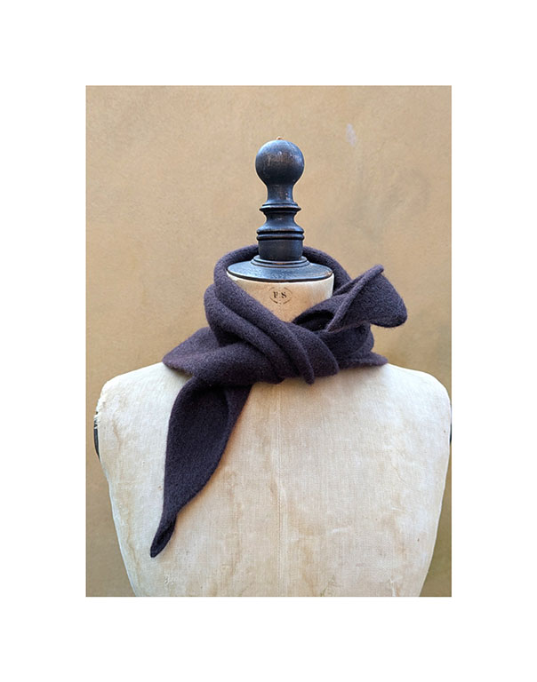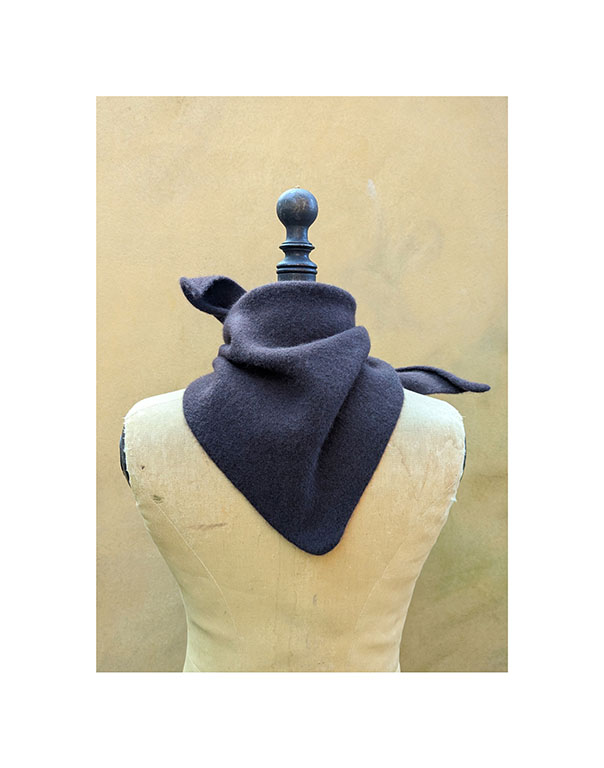 A simple triangle neckerchief in a classic New dark brown.  Just perfect to pop on when there’s a chill….