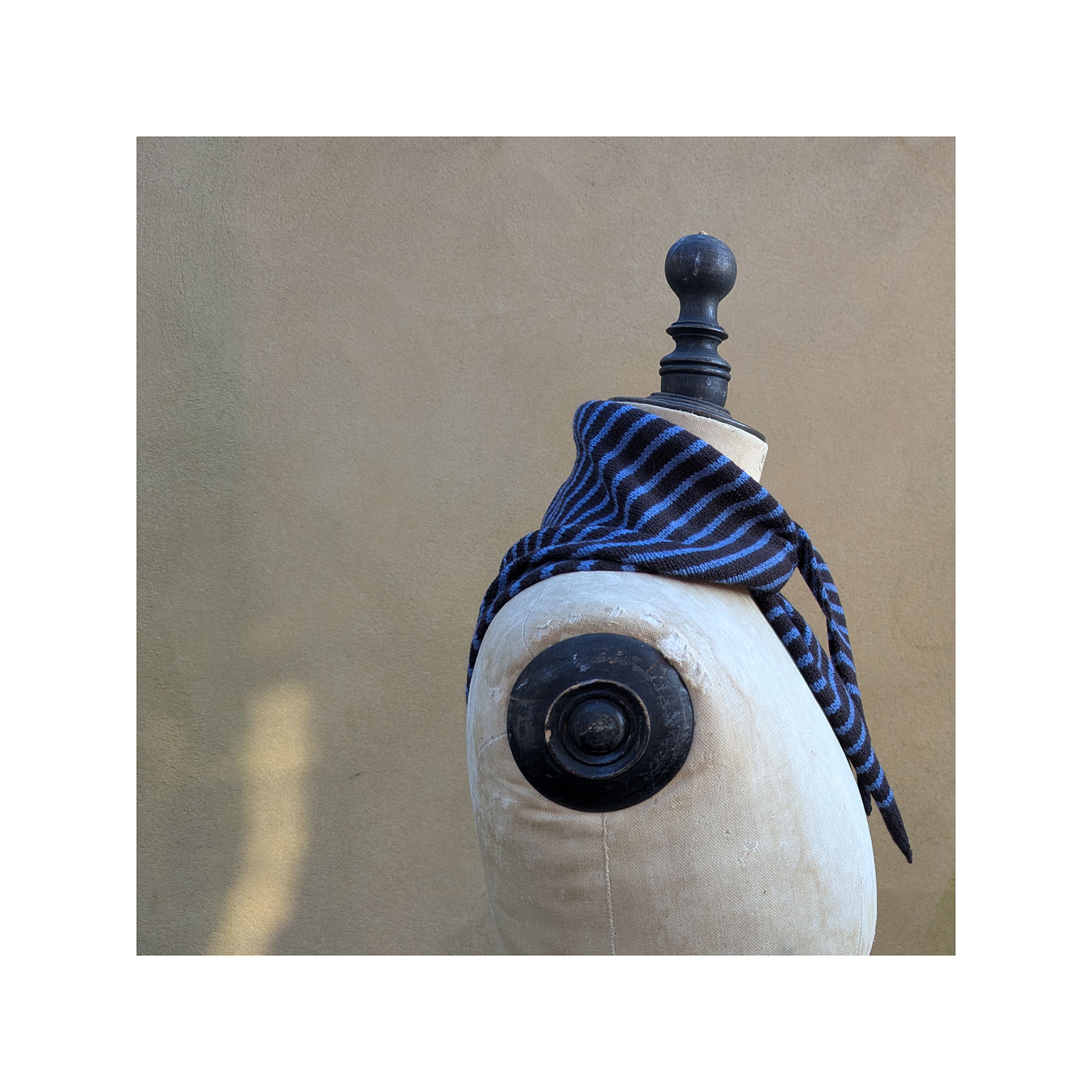 New Stripey Neckerchief “Dark Brown + Studio Blue”